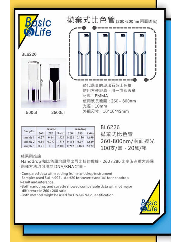 拋棄式比色管 BL6226
